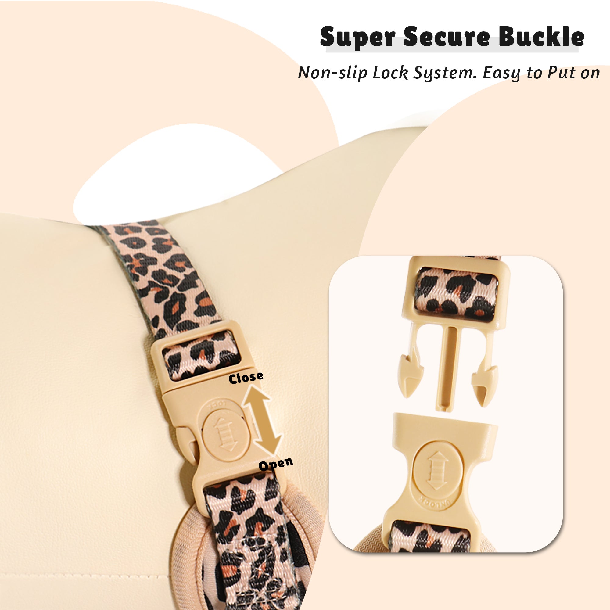 This harness is designed for dogs who love to stand out. Its chic leopard pattern combines trendy fashion with reliable comfort — perfect for everyday walks, city strolls, or stylish outings.