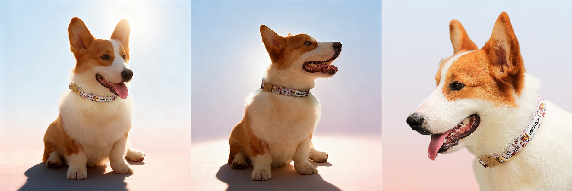 この首輪と、お揃いのフラワープリントのドッグハーネス&リーシュを組み合わせれば、コーディネートされた完璧なセットが完成します。これらを組み合わせることで、愛犬の安全とおしゃれを守りながら、お出かけのたびに魅力的でスタイリッシュな雰囲気を演出できます。