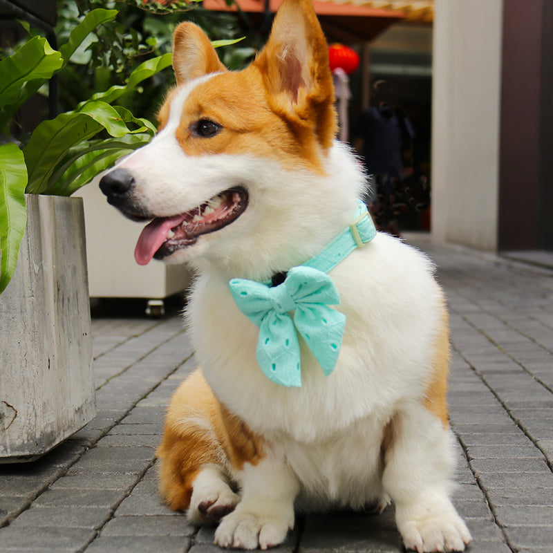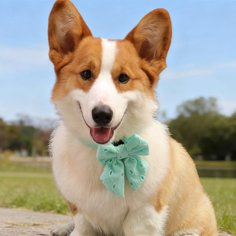 Our Silk Embroidery Dog Bow Tie comes in Small, Medium, and Large, ensuring a graceful fit for dogs of all breeds and sizes. Check our size guide for the best match.
