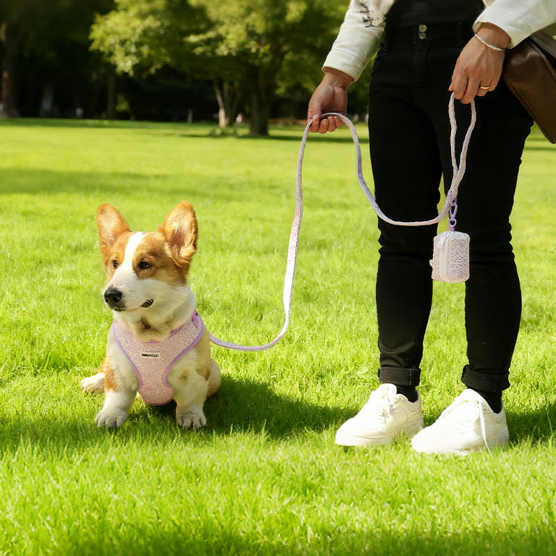 I got this leash made of lavender lace fabric and it feels luxury. First of all, its design and color are very beautiful, and it uses high-quality lace fabric, which makes me and my pet feel very happy when we go out for a walk.